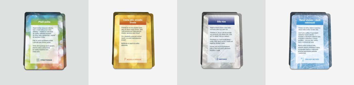 Karty tě přenesou z teorie do praxe – místo čtení nebo sezení doma tě pozvou ven, do přírody a blíž k sobě samému.